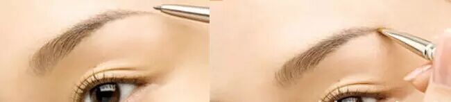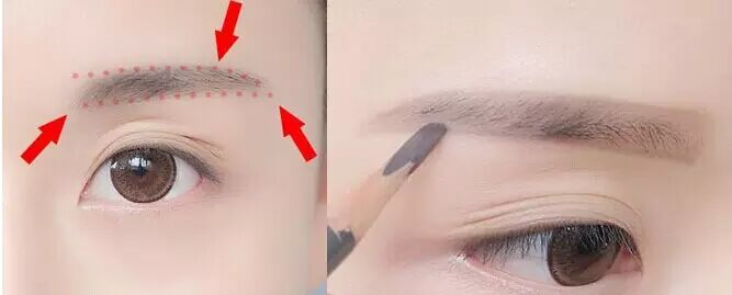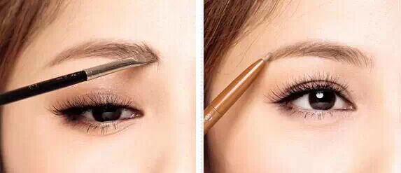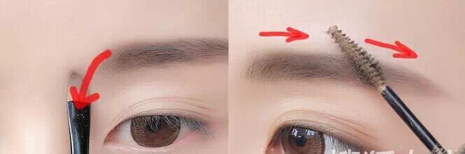 Step1:如果眉毛本身比较淡的话,先用眉笔将眉毛的眉山与眉中处进行填补;如果比较浓密的话就参照上一组图先剃除一部分。