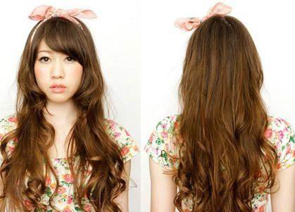 内扣齐刘海刘海显俏皮,将长发变短发,再搭配清新发带显得十分的可爱,有活力。