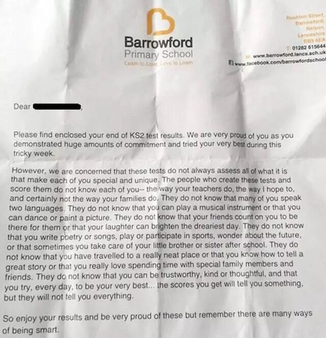 英国有一所小学,在今年的所有毕业生成绩单里附了一封信,这封信告诉我们:任何人的天性都是独一无二的,都有着多面的色彩,都值得被善待和挖掘,都可以变得伟大。