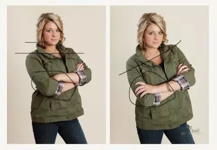 2. 双手叉腰有意想不到的效果,手臂太粗就适度遮挡