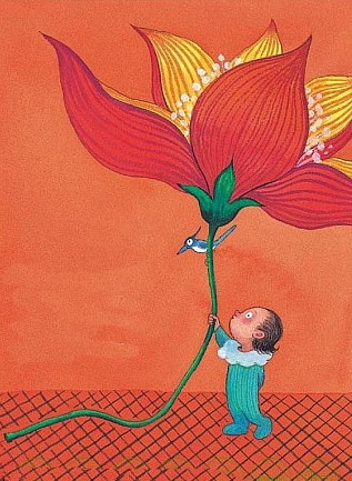 小孩闭上眼睛,看见花、看见梦、看见希望。