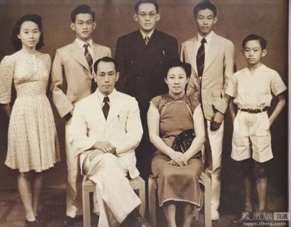 在留学英国初期,李光耀就读于伦敦经济学院,后转入剑桥大学攻读法律,并于1949年毕业,获得“双重第一荣誉学位”,1950年6月在伦敦获得执业律师资格。图为年青的李光耀(后排中)与父母及弟妹合照。