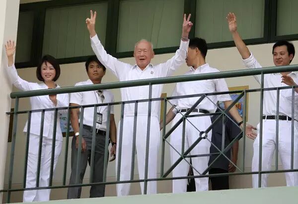 2012年,新加坡国庆庆典上的李光耀。当年,在国庆庆典举行的前几天,有传李光耀病情危殆。在国庆庆典当天,李光耀却如往年般现身,打破谣言。