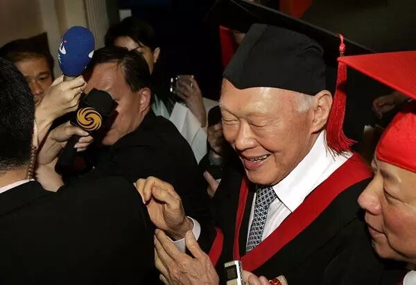 2005年5月17日,复旦大学授予82岁的李光耀名誉法学博士的学位。离场时,他被记者包围。