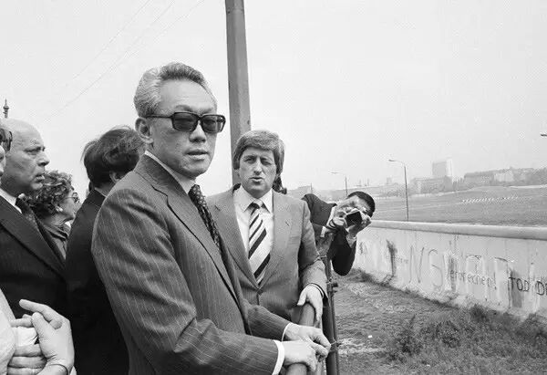 1979年6月13日,正在西德访问的李光耀站在柏林墙边眺望东德。