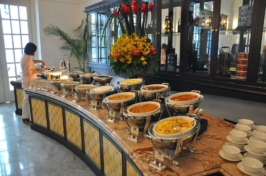 【Tiffin Room】最早在1892年,建造于莱佛士坊,后于1910年迁入莱佛士酒店。Tiffin在印度语的是美食的意思,现今依旧坚持一向的宗旨,为顾客带来北印度最传统的美食。无论是香料酱汁还是烹饪方法,都是依照古法秘制酿造,非常独特。