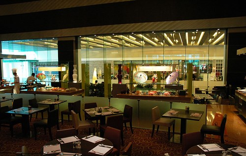 地方非常宽敞,能容纳超过200名宾客同时进餐,游泳池旁则有30个位子。到这里,还能找到很多不同种类的芝士。【Basilico】以意大利餐为主,但因为是自助餐,所以无论是意粉还是披萨,不现吃的话,还是会稍微逊色几分。不过$42++的价钱能有多样的选择跟怡人的环境,还是很值得。