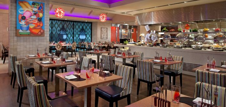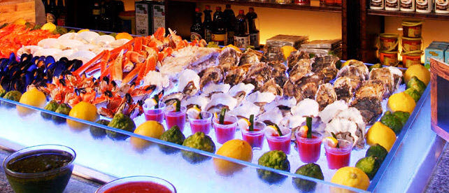 食物种类最多,分区多达16个,各国料理任君挑选。每天都有不同的主题- 礼拜二为生蚝之夜,礼拜三BBQ之夜,礼拜四则为海鲜之夜,16个美食分区都会变成海鲜区,煮法多样,百吃不厌。